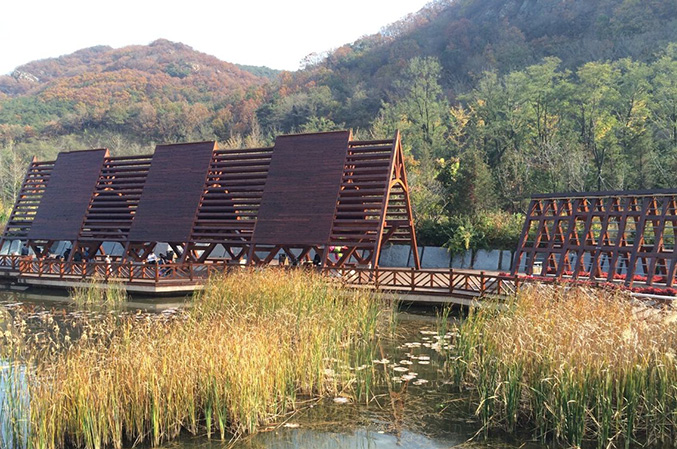 大連西郊國家森林公園風景秀麗,擁有茂林、秀木、云海、瀑布、溪流、湖泊(水庫)等眾多自然風景資源,以及廟宇、道觀等人文景觀。同時,西郊森林公園還是重要的候鳥遷徙地,春秋兩季,候鳥遷徙過境,景象壯觀。公園地處大連市西郊,地貌上屬于矮丘陵區,因此孕育了典型土壤棕色森林土,其自然植被類型被稱為落葉闊葉林,孕育的頂極植被為落葉櫟林,其亞演替頂極應為松林。在公園內,丘陵山地上多為人工林,針葉林以油松和黑松林為主,闊葉林以刺槐林為主,多分布在山麓地帶。
